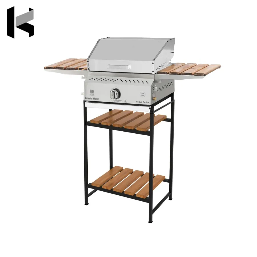 این باربیکیو تنها یک کباب‌پز ساده نیست، بلکه یک ایستگاه پخت کامل محسوب می‌شود. وجود میزهای تاشو در کناره‌های دستگاه، فضای کار مناسبی را برای قرار دادن ظروف، ادویه‌ها و ابزار کباب‌پزی فراهم می‌کند. در قسمت زیرین بدنه، یک کابینت جادار تعبیه شده است که محل مناسبی برای قرار دادن کپسول گاز یا لوازم جانبی آشپزی است. همچنین، تعبیه یک دماسنج (ترمومتر) دقیق بر روی درب باربیکیو به شما این امکان را می‌دهد که دمای داخل محفظه را به دقت کنترل کنید؛ ویژگی‌ای که برای گریل کردن استیک و پخت غذاهای حساس بسیار ضروری است.